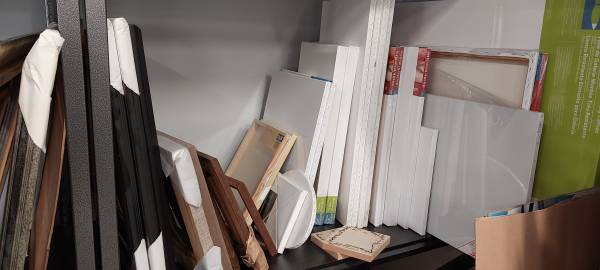 I have a ton of art supplies, including frames, canvases, easels, display panels, books, etc. This is all inventory and equipment from a studio that is no longer used due to illness. If you would like to look at what is here, please reply via Craigslist with your contact information. Thank you.