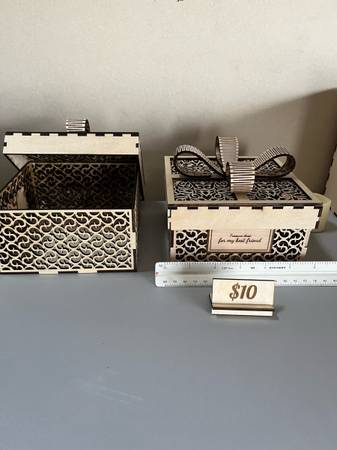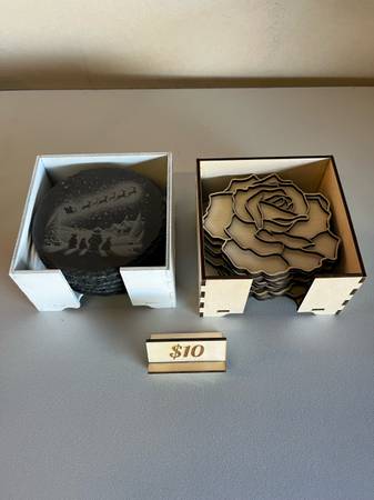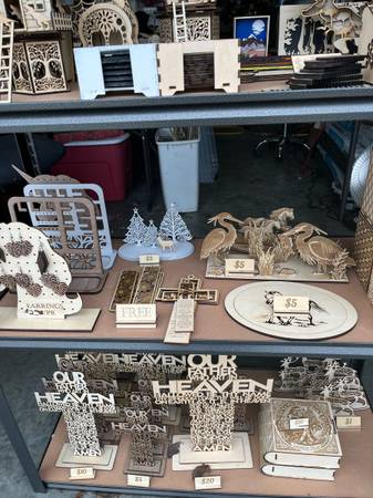 Engravings and laser cut items made with a xtool s1 laser/engraver. Items include Christmas decorations, religious items, toys, home decorations, and cutting boards.