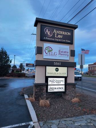 5 large offices, Large Conference Room, Foyer/waiting room area, with front desk and large copy room, large break room, and signage on clearwater ave in kennewick. $3300 gross lease, no extras or hidden cost, includes utilities and electricity. 24oo sq ft includes the break room, bathrooms, and conference rooms which are shared with the law office next door. Call or Text with any questions. Also includes a sign space on clearwater.