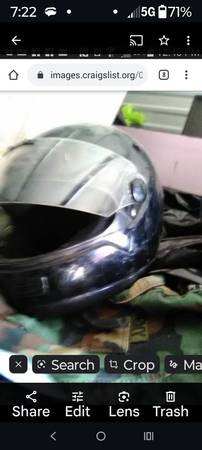 one full face black with shield Lg $25, one blue dirt bike helmet medium small FREE if you pay my gas to get to storage ($10)